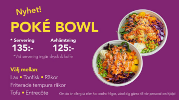 Poké Bowl (välj mellan lax, tonfisk, räkor, friterade tempura räkor, tofu eller entrecôte)